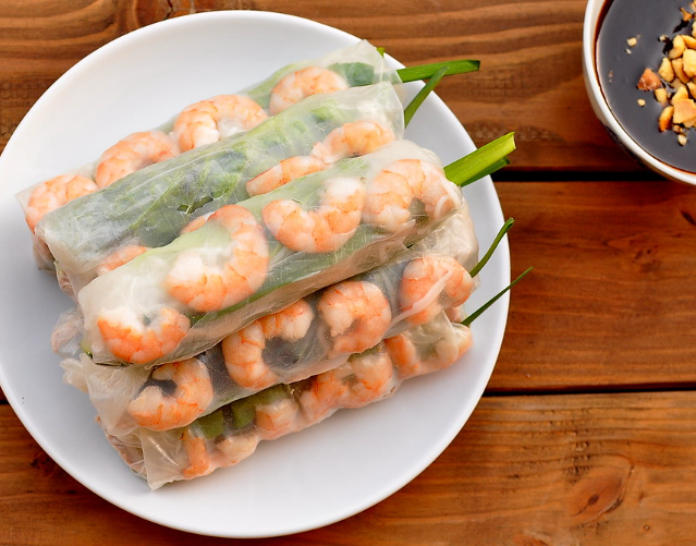 Mix hoisin sauce, peanut butter, garlic, and warm water to make the dipping sauce.