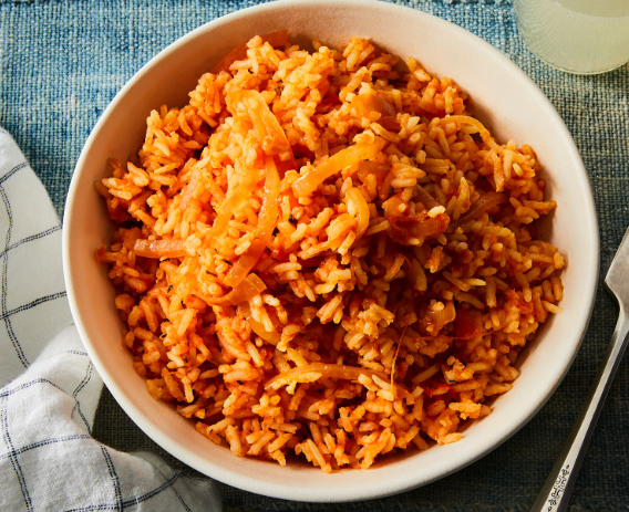 The dish is made by cooking rice in a blend of tomatoes, onions, peppers, and spices. The rice absorbs all the flavors as it cooks, resulting in a deeply seasoned and slightly smoky dish. Each grain is infused with the rich tomato sauce, making every bite full of taste and aroma.