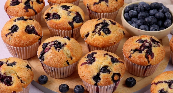 The muffins are prepared using simple ingredients like flour, sugar, eggs, milk, and butter, combined with blueberries to create a rich and flavorful batter. When baked, they rise beautifully with a golden top while staying soft and moist inside. The blueberries add natural sweetness and a refreshing taste that makes these muffins stand out.