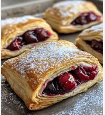 The puff pastry bakes into golden, airy layers while the cherry filling becomes soft, juicy, and flavorful. The combination of crisp pastry and sweet cherries creates a delightful contrast in every bite. You can use fresh, frozen, or canned cherries, making this recipe convenient and versatile.