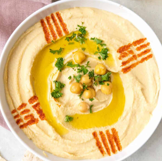It can be served with pita bread, fresh vegetables, or crackers, and can also be used as a spread in sandwiches or wraps. Hummus is versatile and can be customized with toppings like paprika, olives, or herbs.