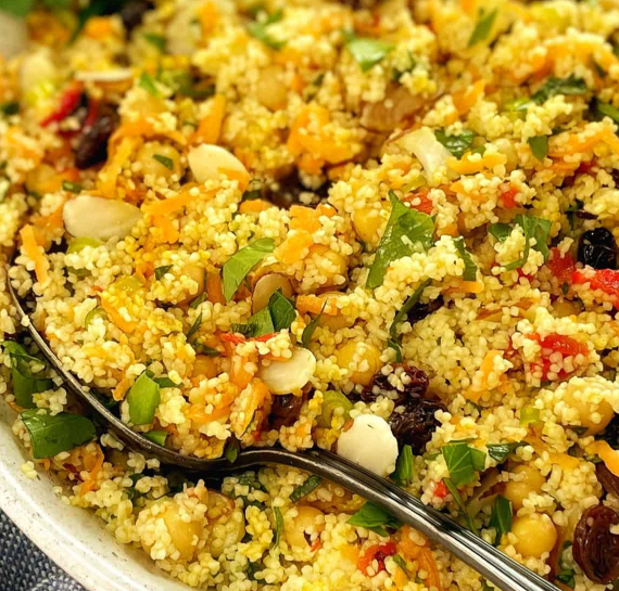 couscous.PNG951.29 KBCouscous is a light, fluffy, and versatile dish made from small steamed granules of semolina wheat. It is a staple in North African cuisine and is loved for its delicate texture and ability to absorb flavors from sauces, vegetables, and meats. Quick to prepare and highly adaptable, couscous is perfect for both simple meals and special dishes.