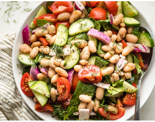 A combination of beans such as kidney beans, chickpeas, and black beans provides a rich source of protein and fiber. These ingredients make the salad both filling and nutritious.