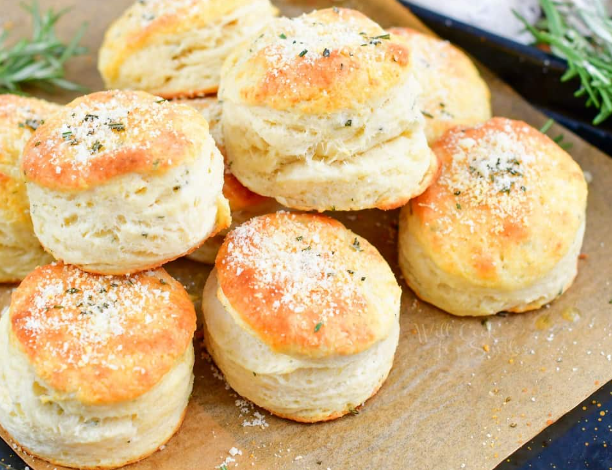 The dough is made with flour, butter, and milk, combined with herbs like parsley, thyme, or oregano. As they bake, the biscuits turn golden on the outside while remaining soft and fluffy inside. The herbs add a fresh and fragrant touch, making each bite flavorful and satisfying.