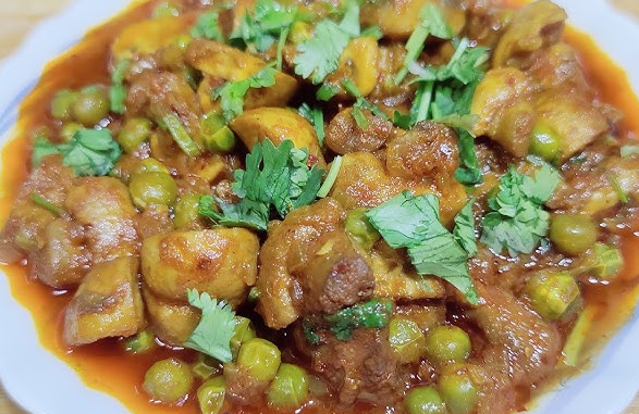 The curry is prepared by sautéing onions, garlic, and ginger, then adding tomatoes and a blend of spices such as turmeric, cumin, coriander, and chili powder. Mushrooms are added and simmered in the gravy until they become soft and absorb all the flavors. The result is a thick, savory curry with a warm and slightly spicy taste.