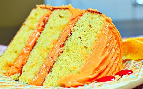 The batter is made using flour, eggs, sugar, butter, and fresh orange juice, which gives the cake its natural sweetness and bright flavor. Orange zest adds a strong citrus aroma, making the cake even more delicious. Once baked, it turns golden, fluffy, and full of fresh orange goodness.