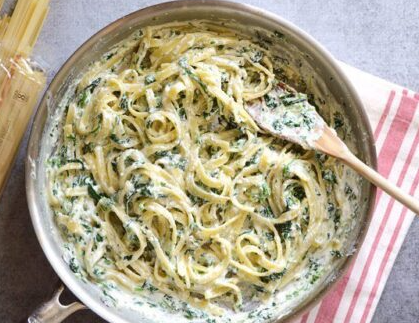 The sauce is made by sautéing garlic and spinach, then mixing it with ricotta cheese to create a smooth and velvety coating. The pasta is tossed in this creamy mixture, allowing every bite to be flavorful, soft, and satisfying. A touch of Parmesan and black pepper enhances the taste beautifully.